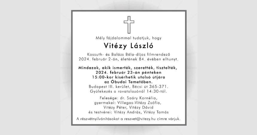 Mély fájdalommal tudatta Vitézy László családja, hogy a filmrendező 2024. február 2-án, életének 84. évében elhunyt.